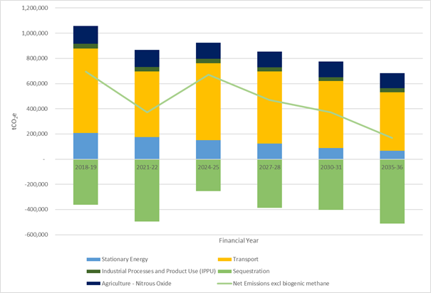 [6] The scenarios presented assuming all planting occurs in 2025. This is not realistic, and is provided only to illustrate the significant land area required to meet a short-term ‘net zero’ city position. The land area required to meet a 2035 target is likely to be higher than is shown in Table 1, due to the need to phase plantings over several years to account for labour, land, tree sapling and financial constraints.
