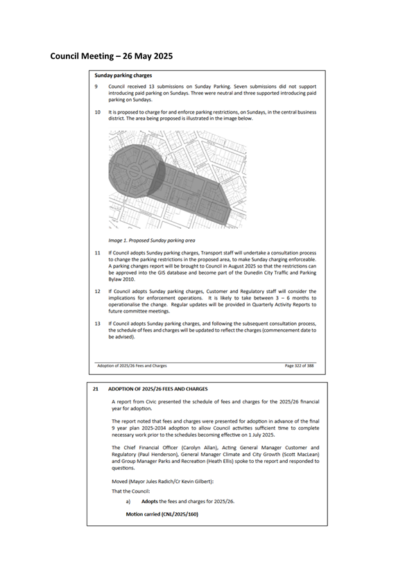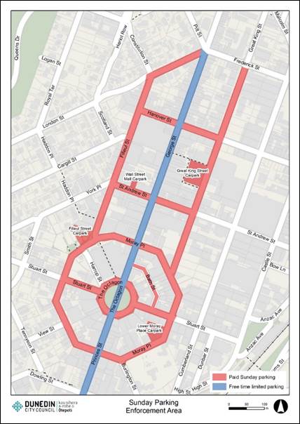 16 Sunday parking fees are included in the Dunedin City Council’s schedule of fees and charges. This means a fee can now be applied in areas where Sunday parking restrictions are implemented through the Traffic and Parking Bylaw.