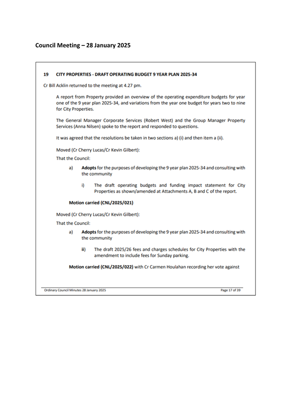 Attachment B - Council direction for Sunday Parking |
