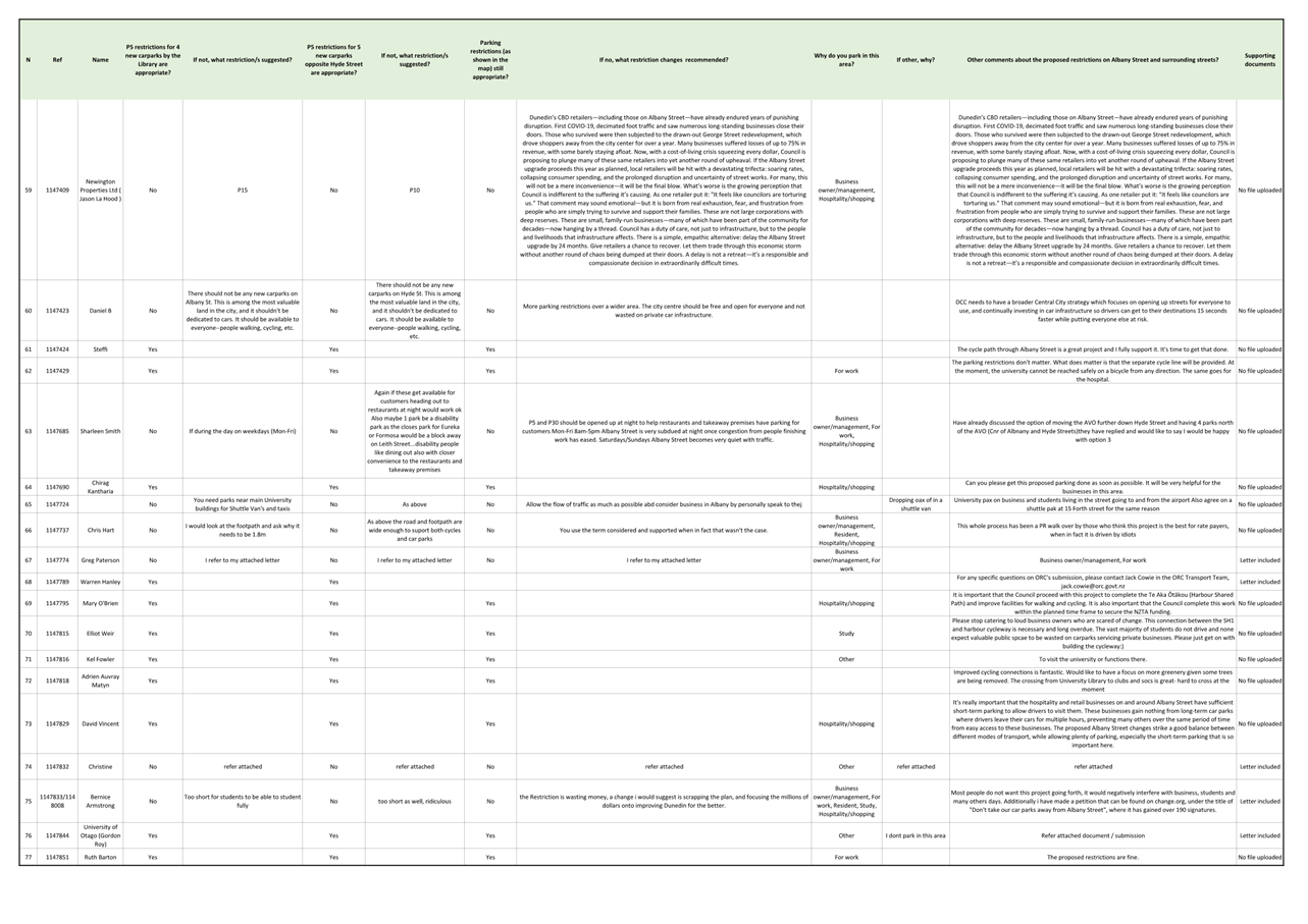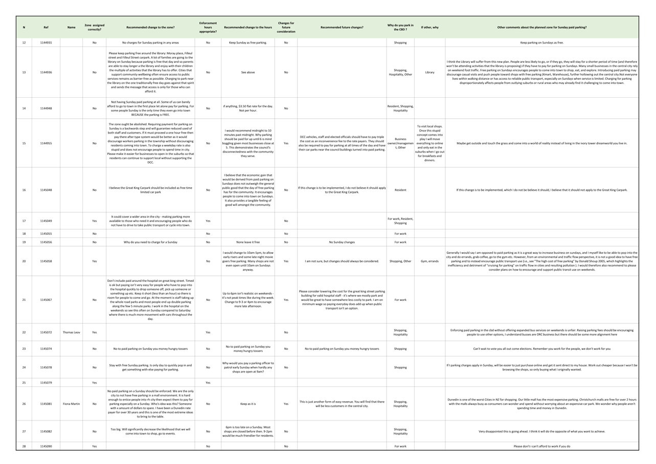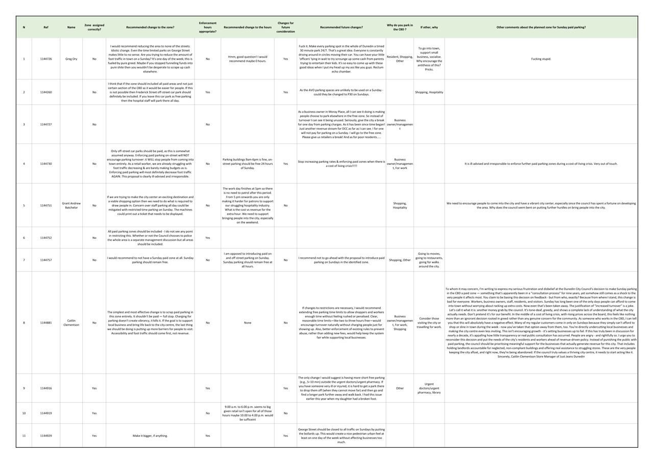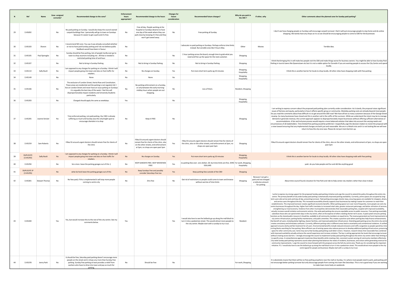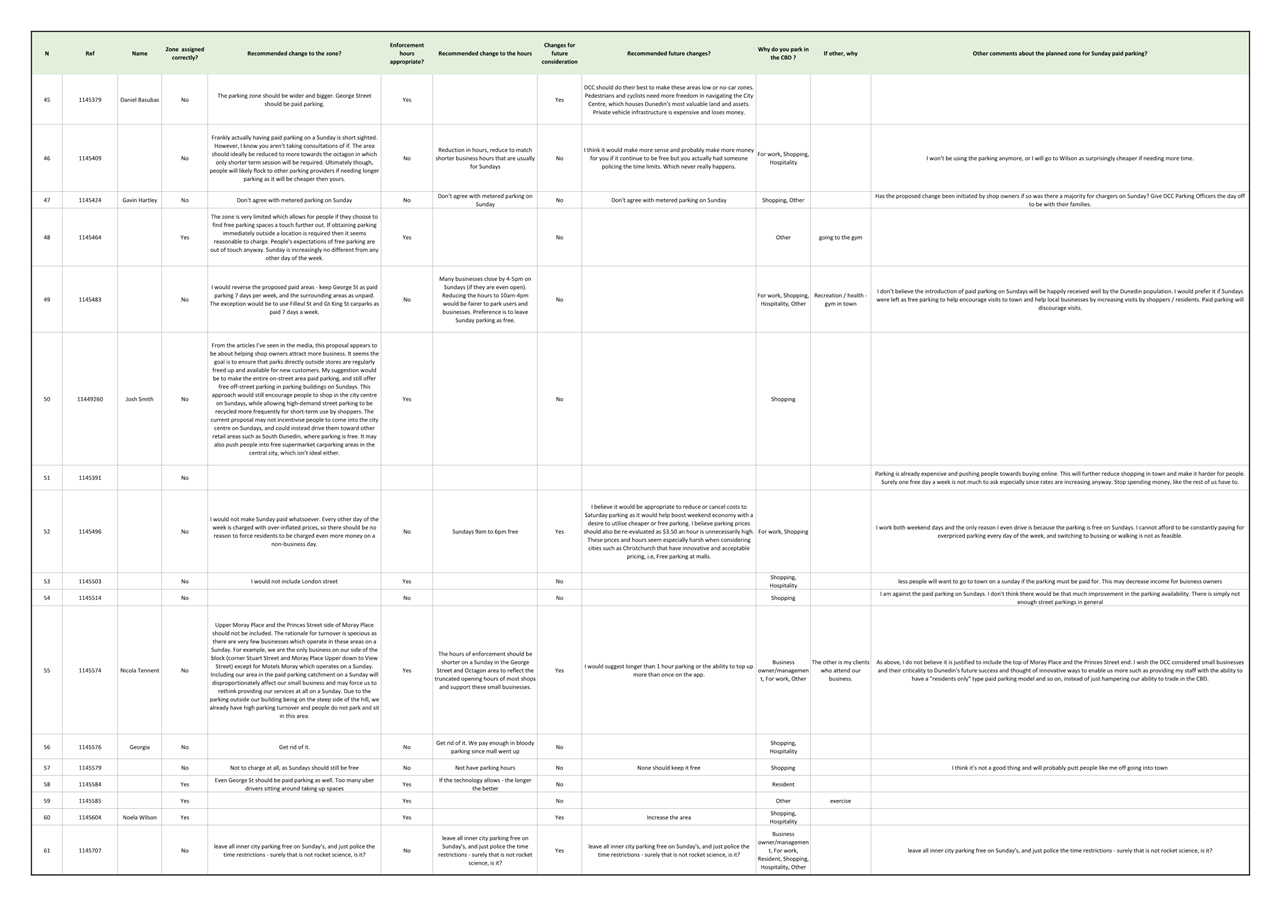 Attachment C - Sunday Parking Submissions List |
