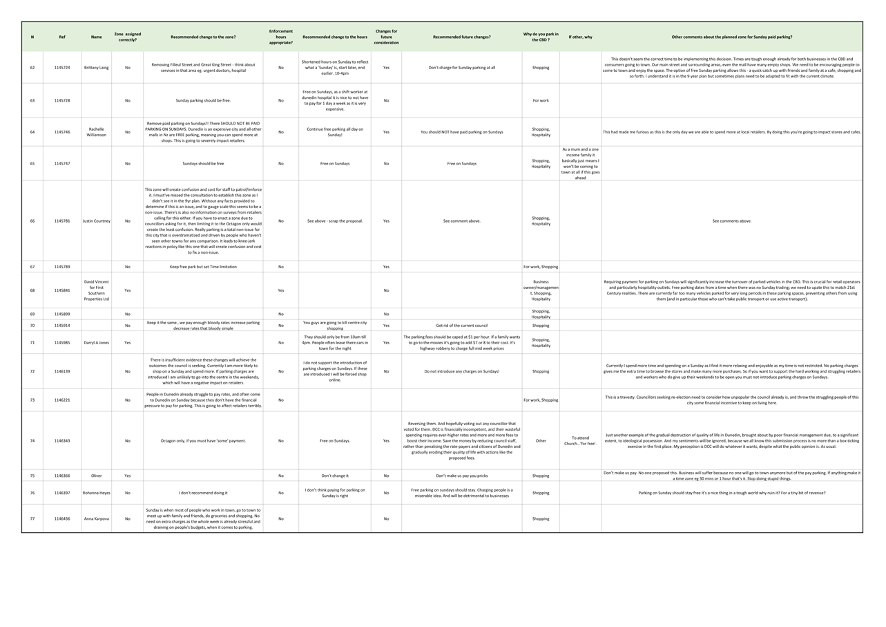 18 Attachment C details the feedback received relating to Sunday Parking. In total, 84 submissions were received.