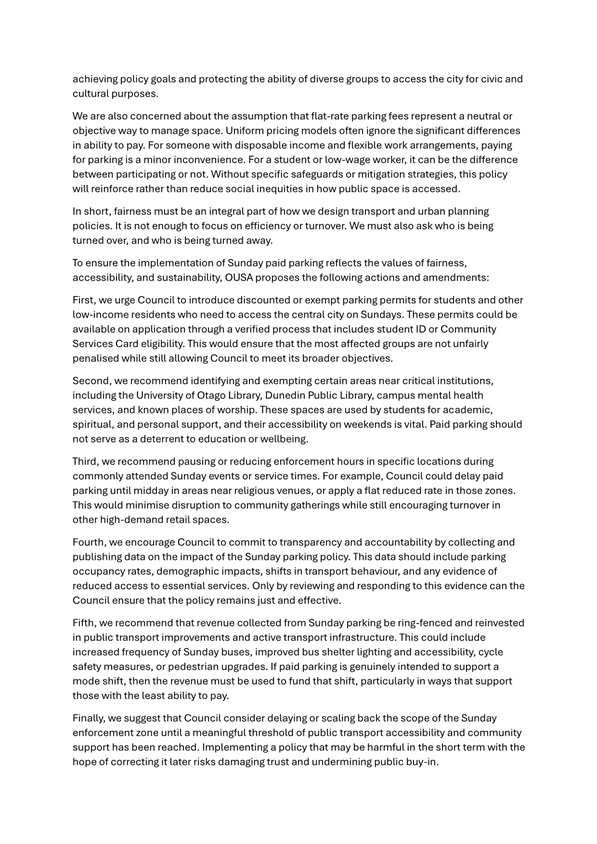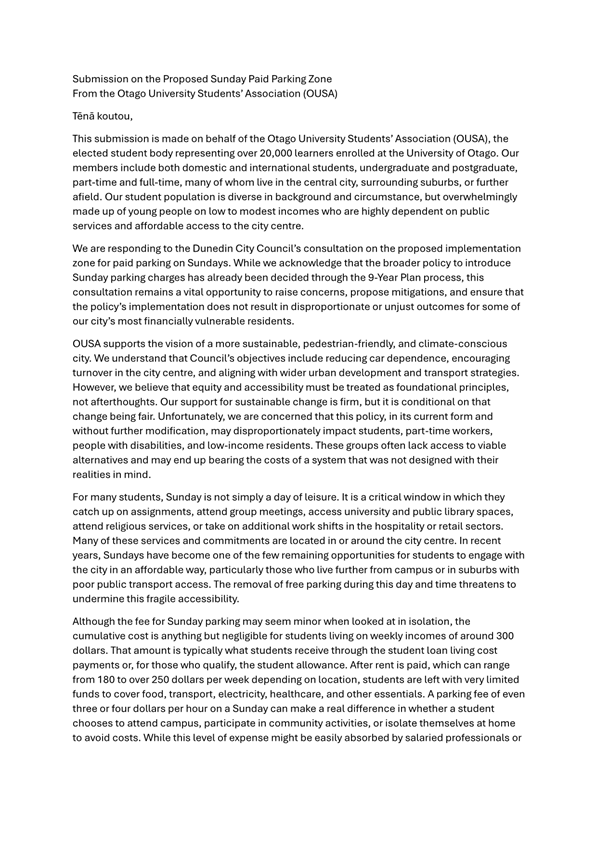 17 Consultation on Sunday charging was conducted in July and August 2025, seeking feedback on the proposed parking enforcement zone and hours of operation. Letters were sent to affected property owners, residents, and businesses, while the proposal was also made available on the DCC website. Signage was installed in the proposed paid area, illustrated in Figure 1.