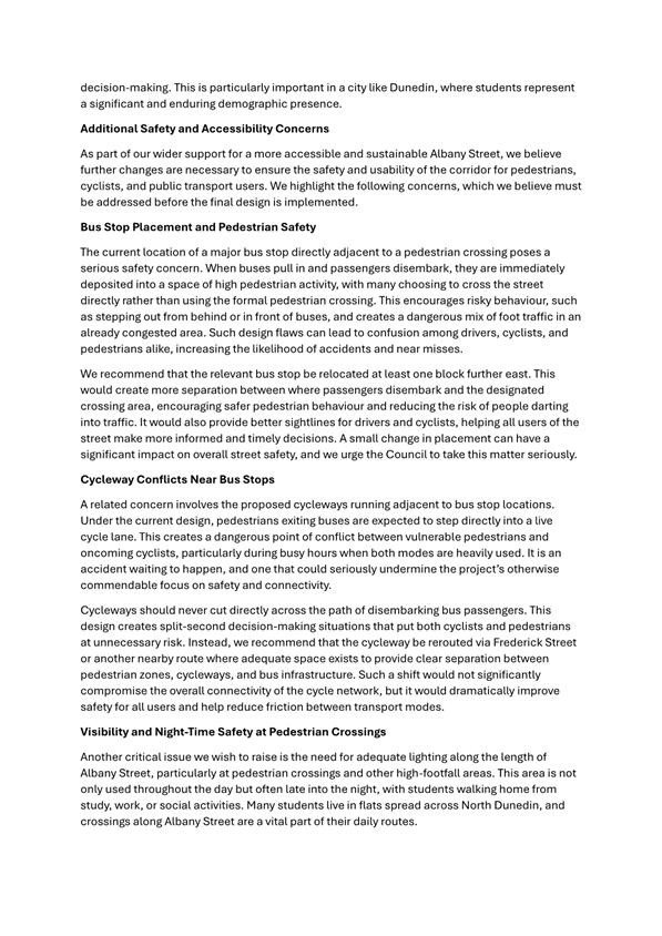 · Does not support the objectives stated by ORC for faster and more efficient bus journeys in this area (faster public transport journeys and public transport use have a direct relationship).