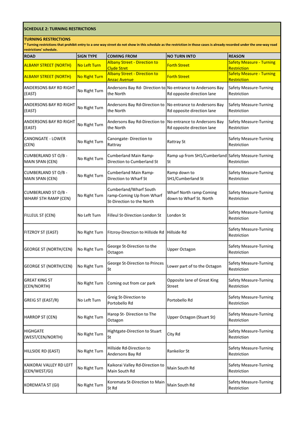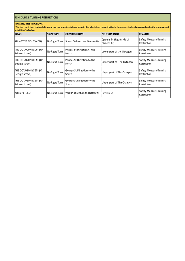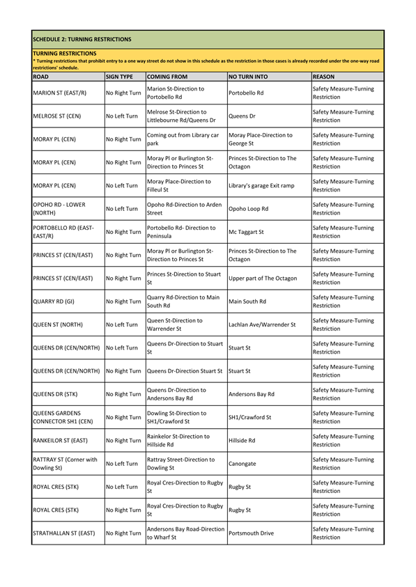 Attachment H - Schedules 1 and 2 - One-way and Turning Restrictions |
