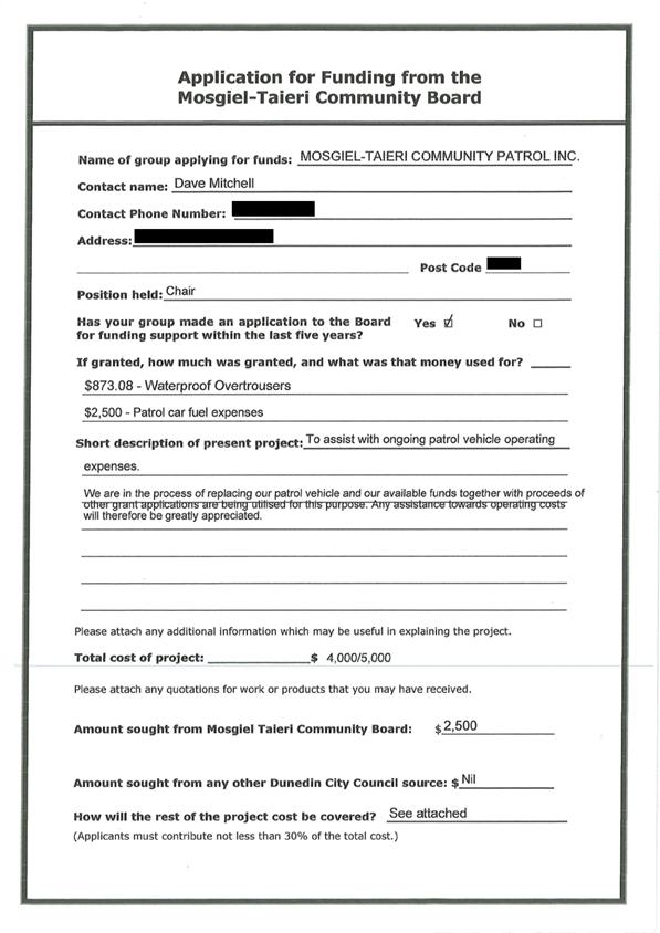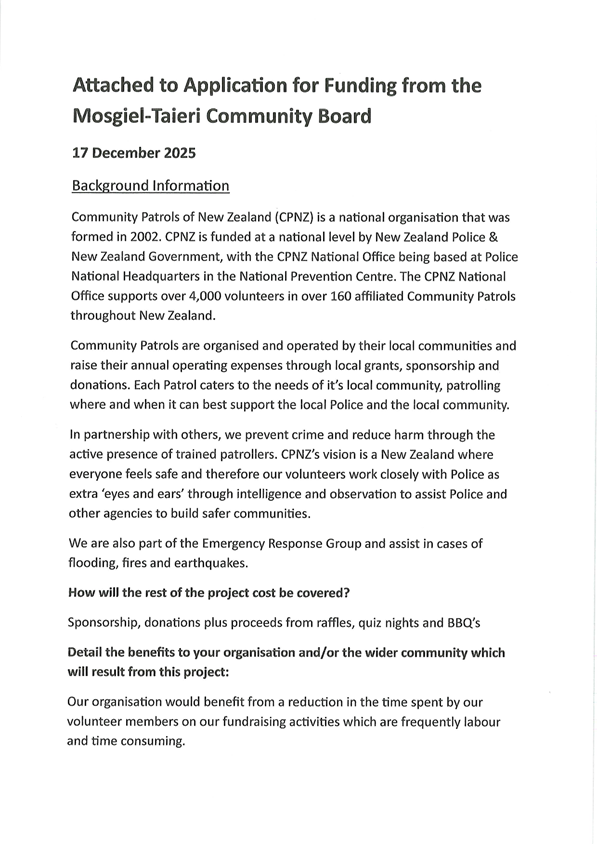 2.4 Public Forum - Mosgiel-Taieri Community Patrol 4