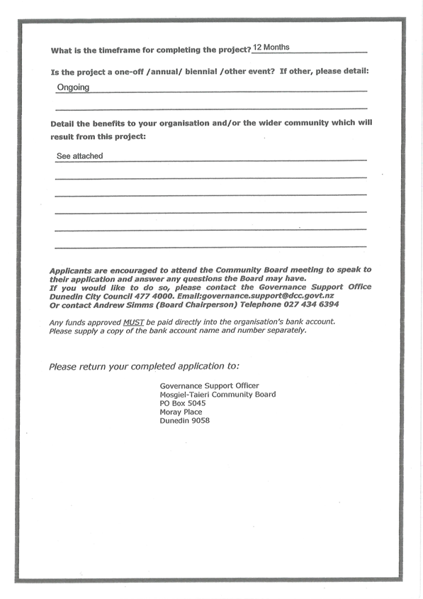 23 Board or members of the public wishing to advise Council of any operational issues or concerns, e.g., potholes, vegetation, burst pipes are reminded to contact the Dunedin City Council Customer Services Agency on 03 477 4000 or email dcc@dcc.govt.nz. For any non-urgent matter please contact council via the online “Fix it form”: https://www.dunedin.govt.nz/do-it-online/report/fix-it-form .