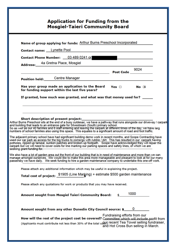 Ms Lynette Pool will speak to the funding application from Arthur Burns Preschool.
